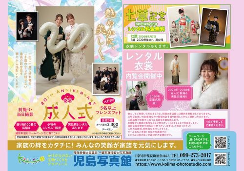 1933年に創業し、伊集院町をはじめ日置市、鹿児島市内を中心にたくさんのお客様にお越しいただいております。 ワンカットごとに思いを込めてお写真一枚一枚を丁寧に仕上げます。 確かな撮影技術と写真に込めた思いが当写真館の仕上げる写真です。