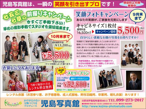 鹿児島県日置市伊集院町で家族写真、記念写真の撮影は児島写真館へ